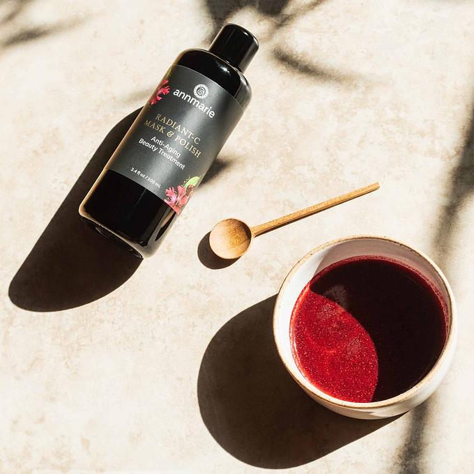 Experience the ultimate anti-aging beauty treatment with the Radiant-C Mask & Polish. This luxurious blend combines potent antioxidant and vitamin C-rich herb and fruit extracts, including acerola cherry, kakadu plum, camu camu, goji berry, amla berry, strawberry, seabuckthorn fruit, and lemon peel powders, delivering unparalleled brightness and rejuvenation to your skin. Harnessing the power of hibiscus, this formula firms, lifts, and evens the look of skin tone while protecting against environmental stressors, purifying the complexion, and providing intense moisture for a naturally glowing and supple complexion. Finished with wildcrafted red sandalwood and bamboo stem powder, it lightly polishes to bring harmony and a renewed look to aged skin.