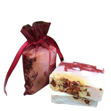 Experience the intoxicating, romantically fragrant aroma of real roses and lilacs in your shower! This ultra rich, handcrafted artisan soap will leave your skin moisturized and rejuvenated with all of the organic oils. Bathe yourself in a bouquet of Roses - this luxury soap bar smells and feels heavenly! It's scent of pure roses and lilacs - it's romantic, feminine and intoxicating. The rose petal and lilac soap bar comes in a beautiful matching red organza bag.The gorgeous soap makes a wonderful gift for any special lady in your life! Pamper her or yourself and uplift your senses.