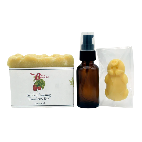 Immerse yourself in the calming essence of lavender with our Lavender Holiday Gift Set, a seasonal collection crafted to indulge and soothe. This luxurious trio includes our Gentle Cleansing Cranberry Bar for your shower routine, an adorable pig-shaped Moisturizing Body Bar for post-shower hydration, and our exclusive 2024 harvest Lavender Infused Raspberry Seed Oil to nourish and rejuvenate. Available only for the holidays and while supplies last, this gift set is the perfect way to celebrate the season or treat someone special to the gift of relaxation and self-care.