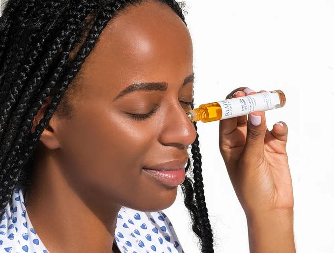 Gently roll along the eye area and tap into the skin with ring finger to facilitate absorption. Use both am + pm following cleansing and toning.