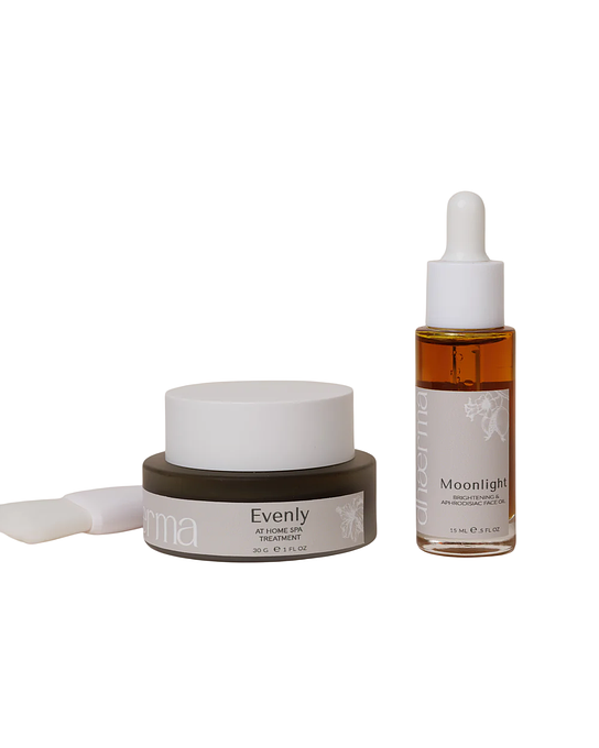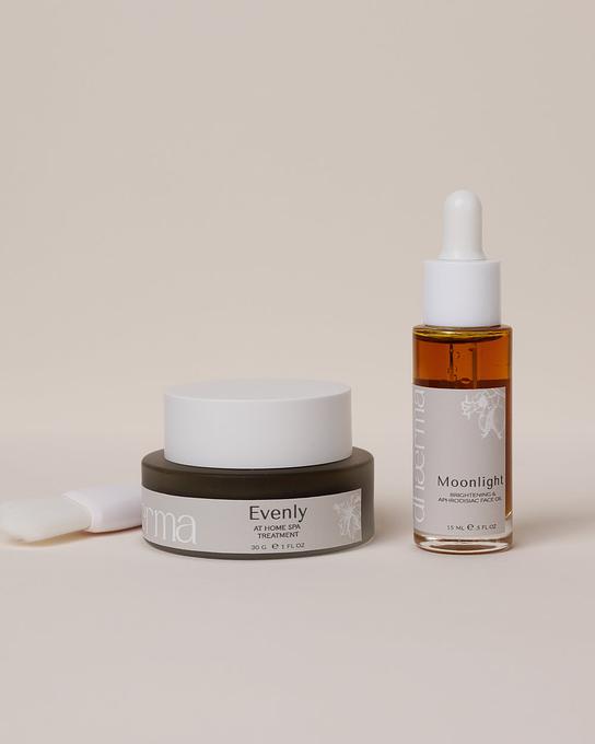 Have dark spots and hyperpigmentation? Then the Bright Night Duo is exactly what you need. Our Moonlight serum is packed with antioxidants and vitamin C to brighten and rejuvenate your skin while you sleep. Paired with our regenerating face mask, it deeply hydrates and evens skin tone, ensuring you wake up with a radiant complexion.