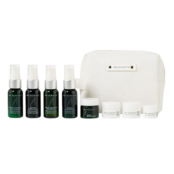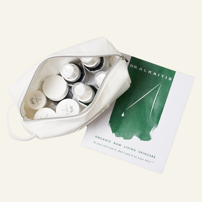 Introducing our new 8-Piece Organic Travel Kit Deluxe, thoughtfully designed for eco-conscious travelers. Our TSA-approved, recycled cotton bag is not only sustainable but also water-resistant and fully lined, ensuring your travel essentials stay safe and dry. This beautifully packaged kit includes the following organic products: