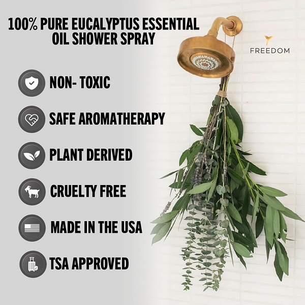 - Transform Your Shower Into a Spa: A couple of sprays into the shower and your daily shower turns into a 5-star luxury spa experience with the refreshing 100% pure Eucalyptus oil.