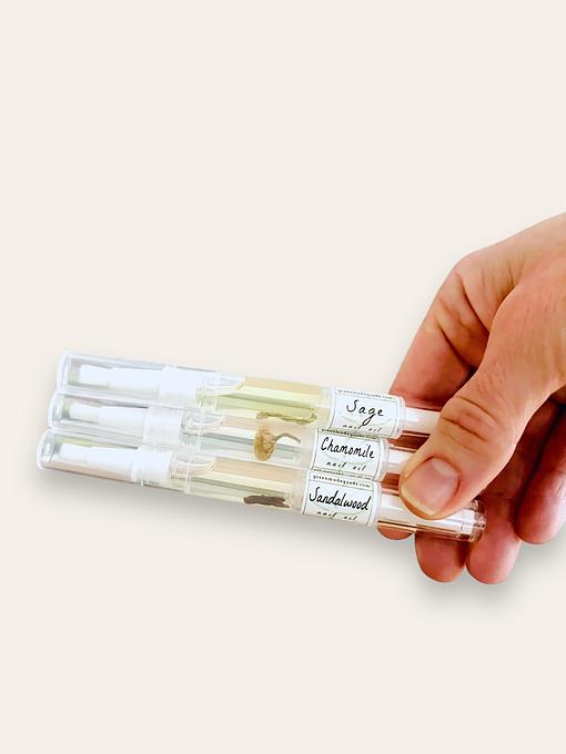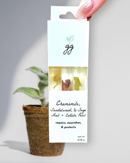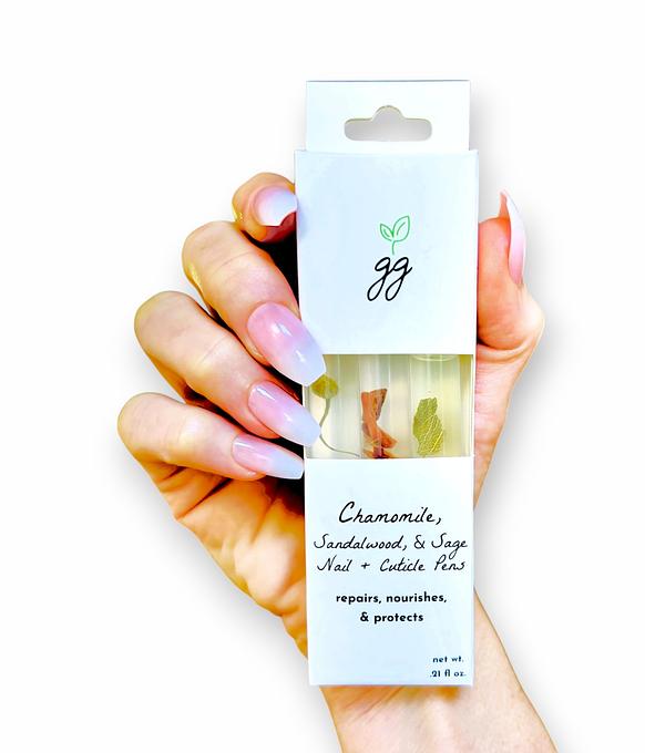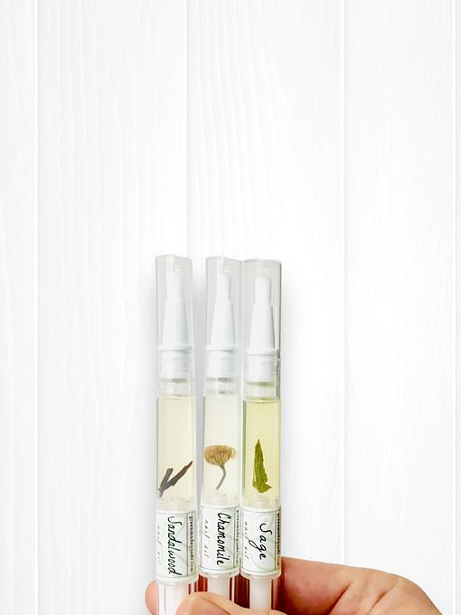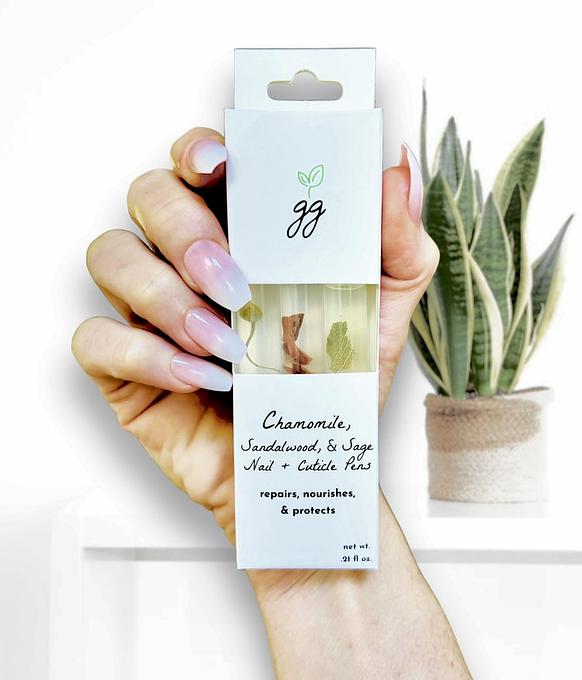 Breathe in the woodsy and satisfying scents of sandalwood, sage, and chamomile- all while nourishing your nails and cuticles with the 'click' of a pen.