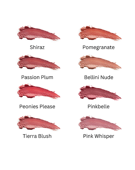 Our ARIA PURE Lipstick in a sample jar (.75g/0.026oz) has a luxuriously creamy texture and exceptional color delivery and features a patented GMO-free, plant based complex proven to boost water absorption and hydration levels by +25% across 3 layers of the lip.