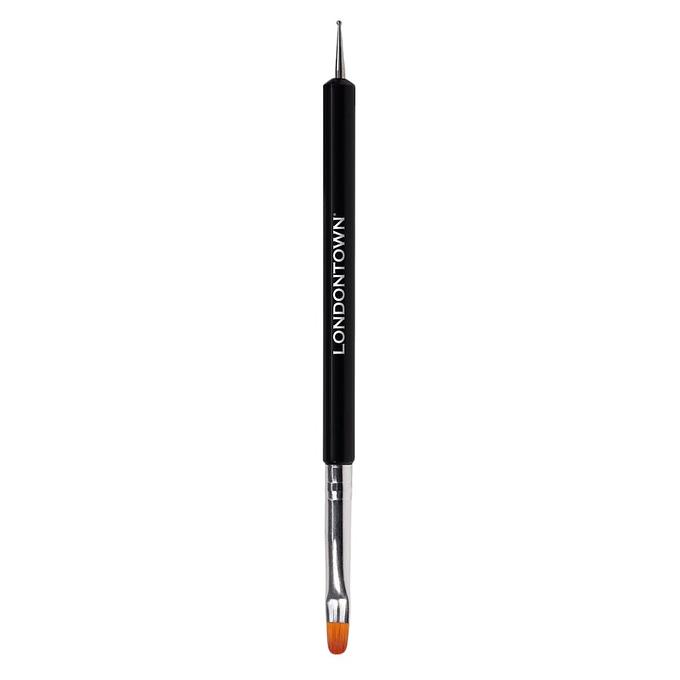 The ultimate multi-purpose tool designed to take your at-home nail art to the next level. Two sides ensure you’re covered from start to finish: use the dotting tool on one end to create pro-level designs, then use the flat brush to clean up any stray polish around the nails for a picture-perfect finish.