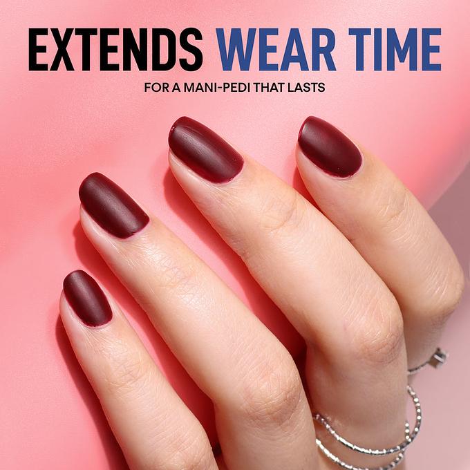 Extends mani-pedi longevity protecting polish from chipping, splitting, fading, yellowing, and everyday wear and tear