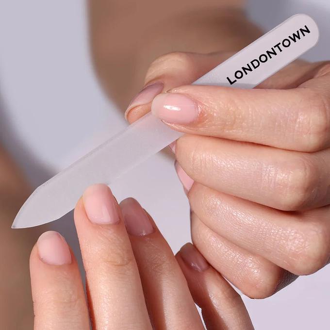 Glass Nail File - White: Start on one side of the nail filing in one direction, repeat on other side until desired shape is achieved. To clean, rinse with mild soap and water, then let dry. Disinfect regularly by cleaning file with 70% Isopropyl Alcohol (or use a UV Light Sanitizer).