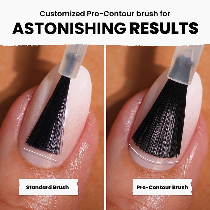 Start with any kur base coat. Once the first layer has dried, apply 1-2 coats of lakur as needed. Let each layer of lakur fully dry for 2-3 minutes before applying the next layer, then seal with any kur top coat. To expedite the drying process, apply 1-2 drops of Accelerating Drying Oil at the cuticle and allow the oil to run to the free edge of the nail.