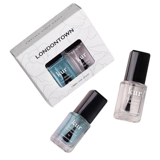 Two essentials with an extra boost of kur-infused care. Though this duo is great for all nail types, it’s especially transformative for those weak or soft, peeling nails. Get Strong Nail Hardener uses multi-polymer technology to create a shield-like barrier that immediately fortifies the nail plate and helps harden nails in as little as one week. Use alone, follow with polish, or finish with a layer of High Gloss Top Coat, our most cushiony formula yet for supreme shine.