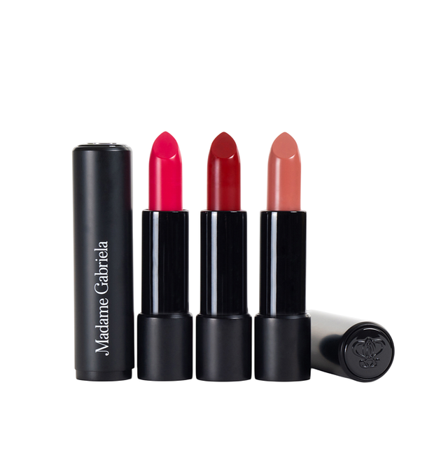 The "Little Black Dress" of lipsticks, 3 essentials for every woman. Go bold with statement red PARIS AT 7PM, a perfect pink pop with NEW YORK AT 1PM, or maybe some nude love with our bestseller SYDNEY AT 8AM. Use them individually or mix to create your perfect lip combo.