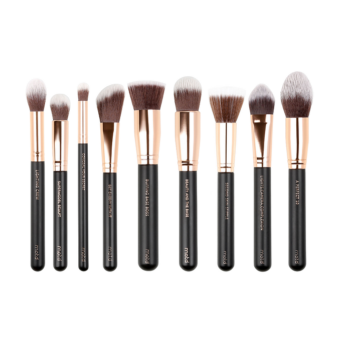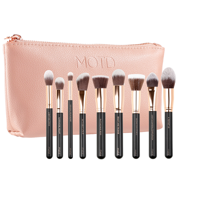 Using the right brushes makes all the difference on how your makeup applies, the intended finish of the product and how long it lasts throughout the day. The MOTD Pro Face Brush Set makes it effortless to apply any makeup formula and coverage. The soft vegan bristles correct, perfect and even out all skin complexions and textures. This brush set includes all 9 face brushes in our rose gold collection.