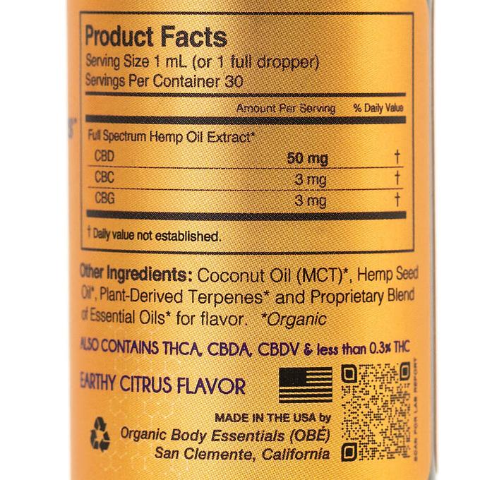 Extreme Terpenes 1,500 mg CBD Oil: If you want a CBD oil that will give you results quickly, we’re the brand for you. Whenever you need a dose of relaxation, Organic Body Essentials has got your back. We offer a small, but mighty CBD oil that comes in 1,500 mg of CBD and other popular cannabinoids including CBG, CBN, THC and even lesser known cannabinoids like THCVA, CBDA, CBDV and THCA. Each bottle is filled with a concentrated formulation of full-spectrum CBD oil based on an organic MCT oil, without any notes of an herbaceous flavor. All natural, non-GMO, pesticide-free, chemical-free, our 1,500 CBD oil is extracted with a carrier oil and made in the USA using organically grown hemp and organic steam-distilled terpenes in a cGMP-compliant facility.