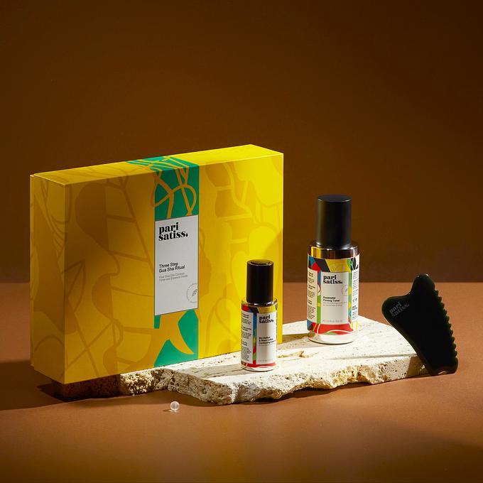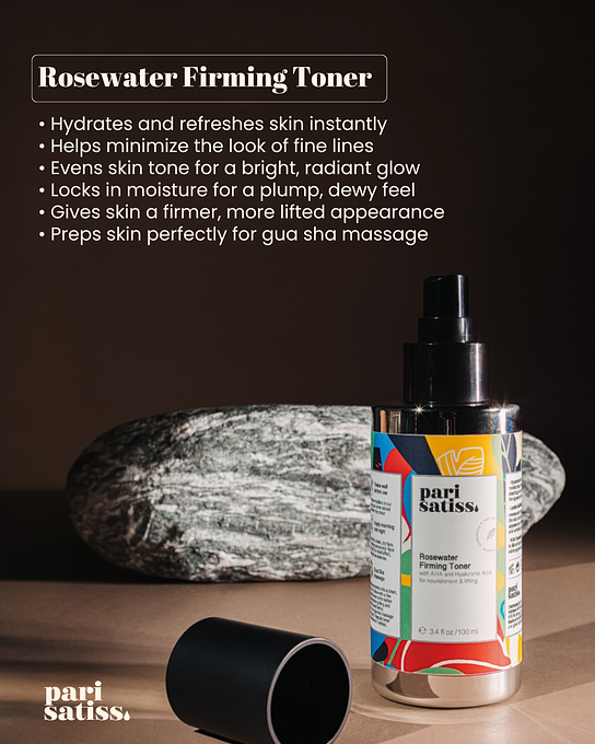 Both Rosewater Firming Toner and Bio-Retinol Contouring Essence were created to nourish and lift. This effect is strengthened by the acient Traditional Chineese Medicine gua sha massage, performed with our patented Pari Satiss Gua Sha contour. Dry skin and skin with fine lines & wrinkles will benefit from this trio the most, and is perfect for any skin type.