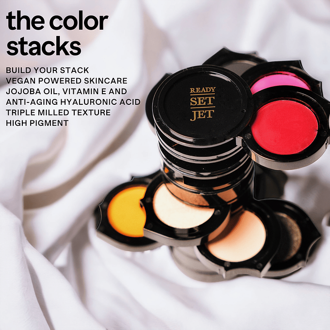 Ready Set Jet Color Stacks are your first-class ticket to luxurious, pigment-rich, adaptable beauty. Colorful adventures await as you snap, stack and go, while customizing your perfect eye palette. Mix and match colors to create a multitude of looks, from sultry and dramatic to soft and natural.
