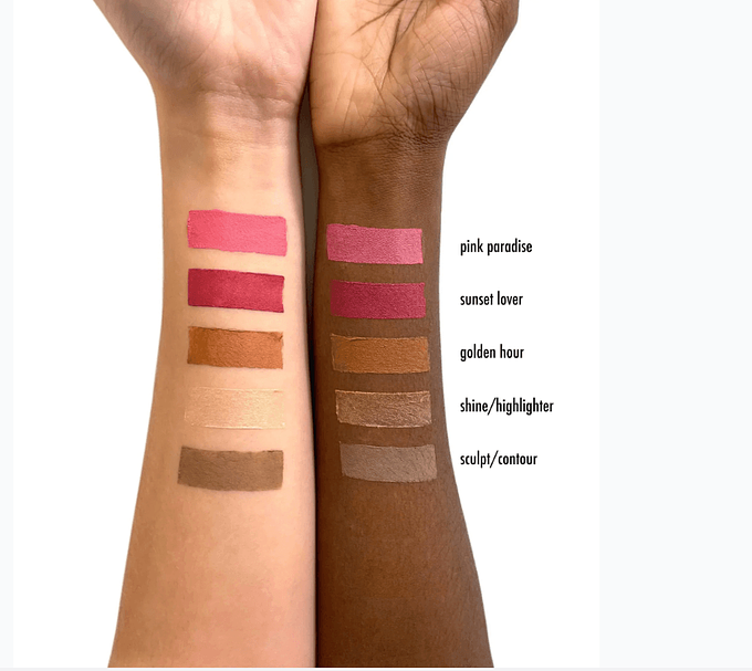 The Sunset Lover is the perfect classic neutral red for an easy monochromatic eyes, cheeks lips look or to make a bold statement.