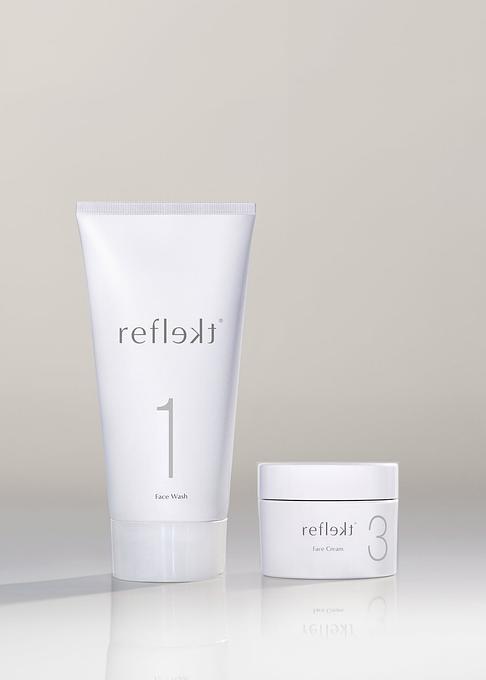 Reflekt 1: A gentle, twice-daily face wash that cleanses, exfoliates, and hydrates all in one step to help you achieve optimal skin pH for a noticeably healthy, glowing complexion. Thoughtfully designed to fade hyperpigmentation while ingredients like hyaluronic acid, vegetable collagen, vitamin B5, and jojoba esters reduce the appearance of pores, boost skin elasticity, and deeply hydrate. Ideal for all skin types, even the most sensitive.