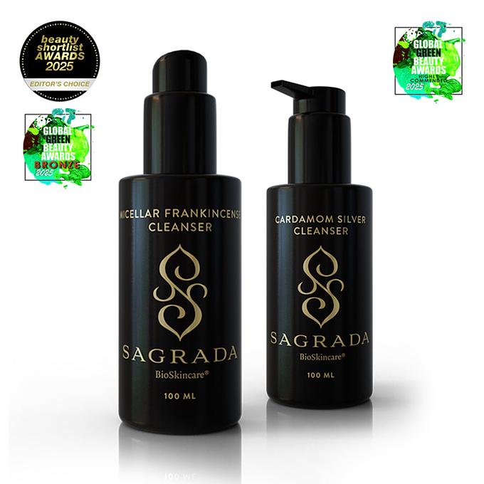 Our Micellar Frankincense Cleanser and Cardamom Silver Cleanser have been honored with esteemed awards for their exceptional performance and dedication to clean beauty:
