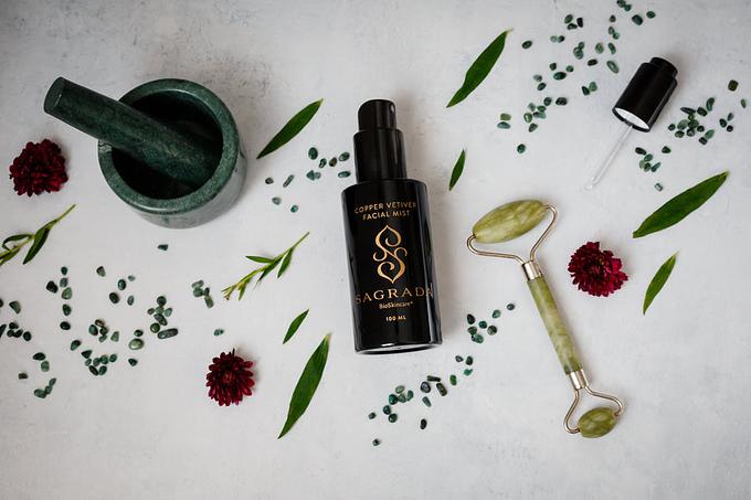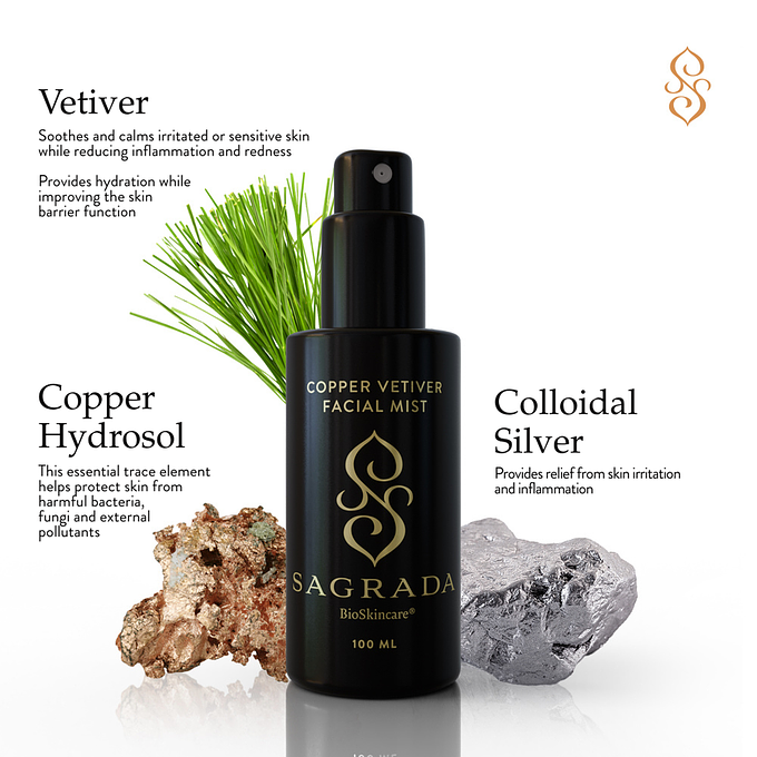 Our Copper Vetiver Face Mist is curated with the finest organic ingredients. As a copper-based, our Copper Vetiver Facial Mist harnesses the natural antioxidant properties of botanicals to protect and rejuvenate your skin. Completely cruelty-free, this formula is as kind to the planet as it is to your skin.