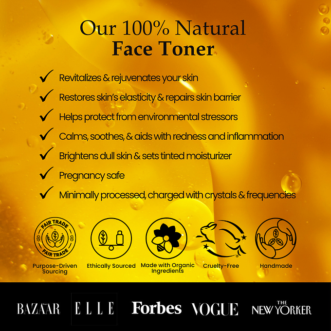This vegan facial toner is a masterpiece of rejuvenation, hydration, and protection, meticulously curated for those seeking a healthy and refreshed complexion daily.