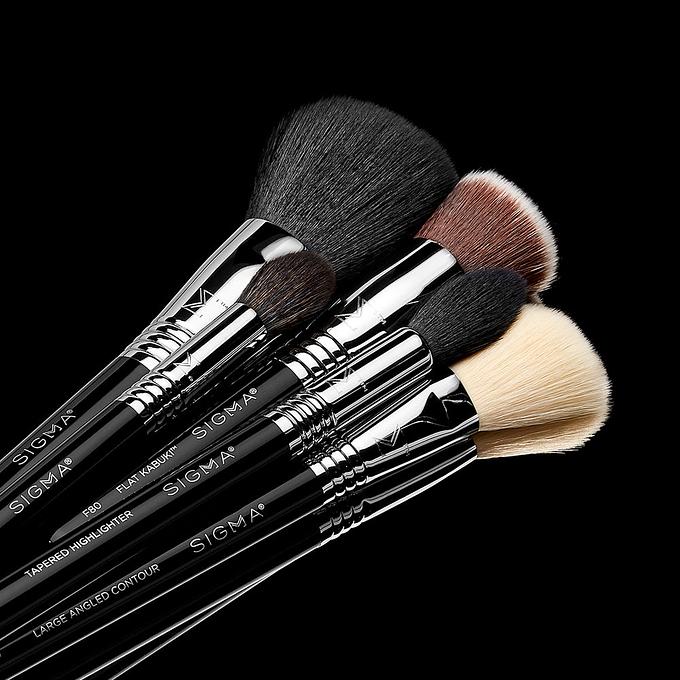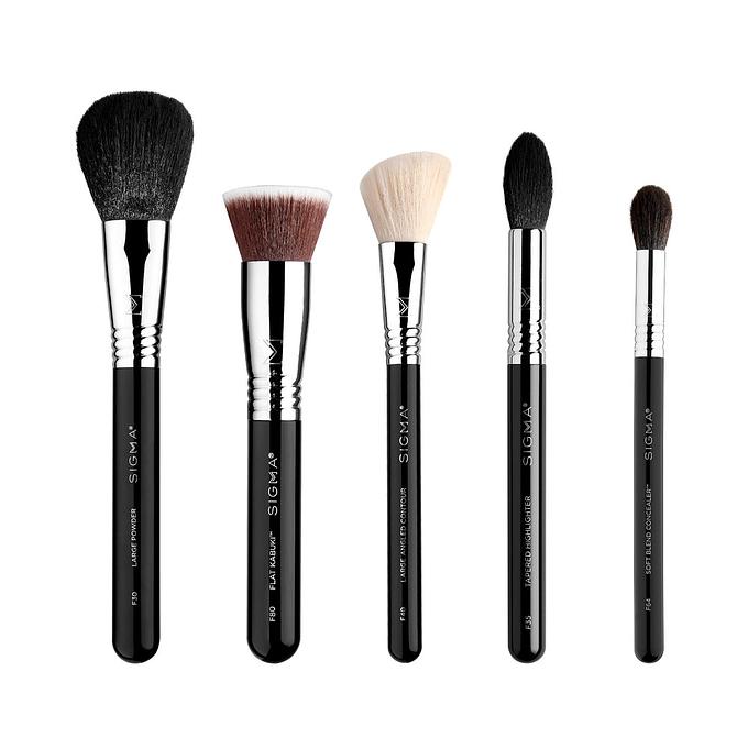 Stipple on liquid or cream foundation with the F80 Flat Kabuki™ Brush, blending it out in circular motions. Then, apply and buff out concealer using the domed F64 Soft Blend Concealer™ Brush. Next, use the F30 Large Powder Brush to apply all-over powder to your face. Take the F40 Large Angled Contour Brush to apply the contour shade of your choice to the hollows of your cheeks or sweep your favorite blush onto the apples of your cheeks.
