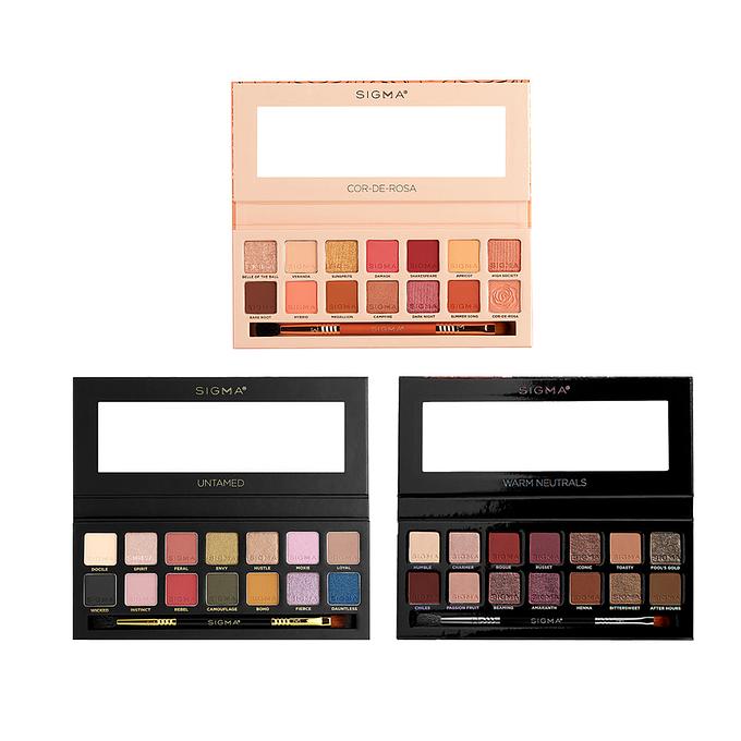 Unleash your creativity with the Untamed Neutrals Eyeshadow Palette Set, a curated trio of Sigma Beauty’s most iconic palettes: Cor-De-Rosa, Warm Neutrals, and Untamed. Designed to inspire effortless artistry, this versatile collection blends bold individuality with classic beauty—perfect for every occasion.